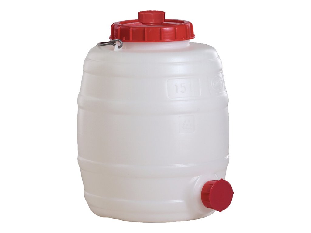 okrúhly - biely - kompletný so skrutkovacím uzáverom Ø 120 mm - výtoková rúrka Ø 34 mm - uzáver s tesnením a výtokový kohútik - vyrobený z polyetylénu odolného voči nárazom a otrasom - odolný voči väčšine kyselín a zásad (informujte sa) - vhodný pre potraviny - odolný voči teplotám od - 20 °C do + 50 °C - max. nosnosť na jedno držadlo 30 kgDodatočné parametre