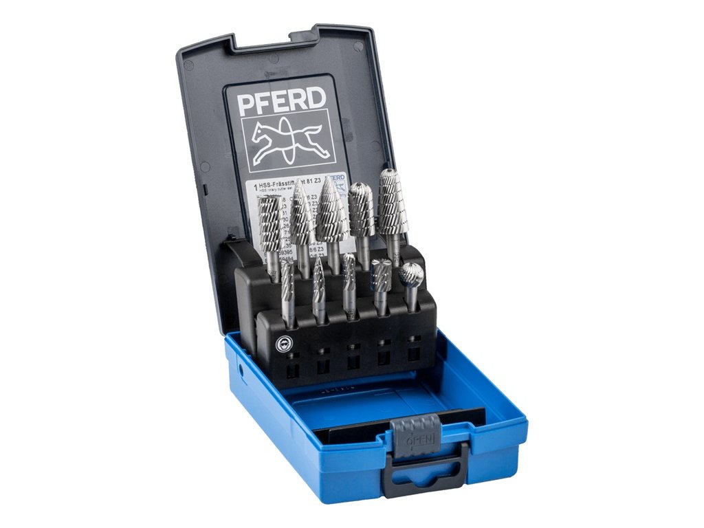 Sada fréz 81 stopka Ø 6 mm 10-dielna HSS 3 plastová krabička odolná proti zlomeniu PFERD TOOLS