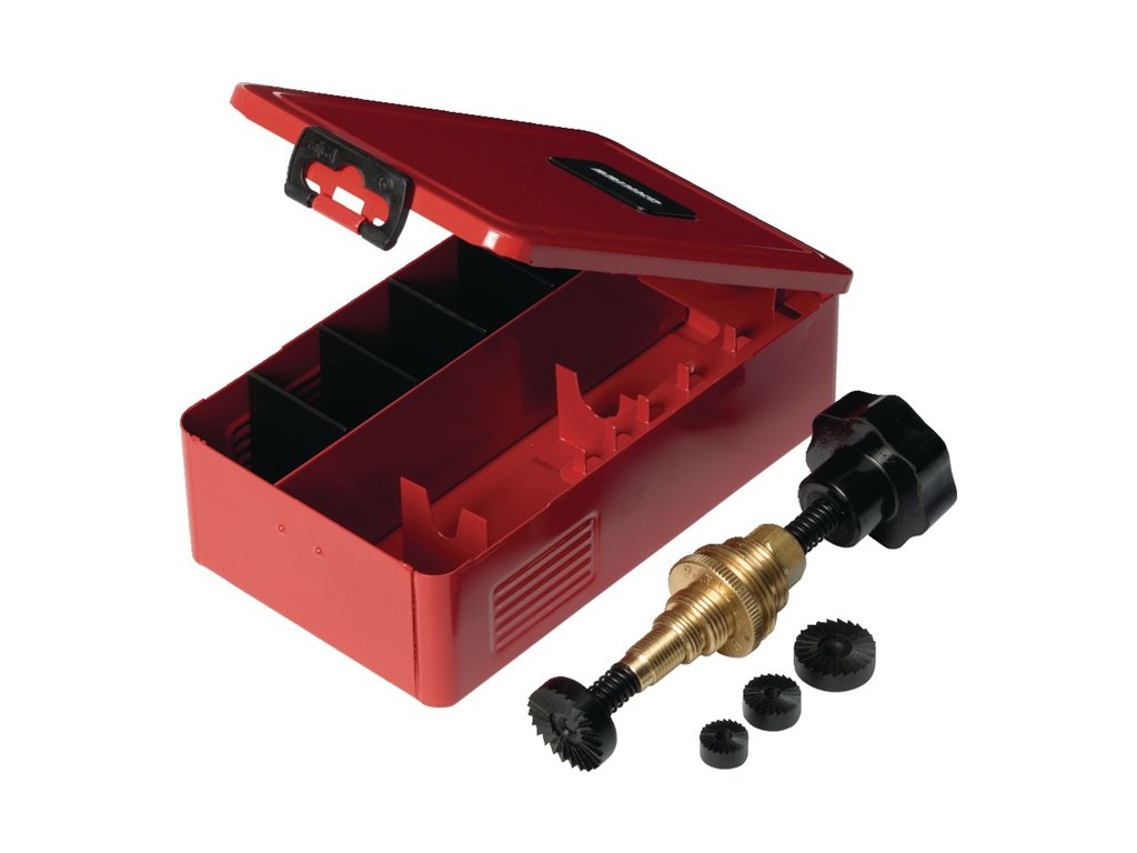 Závitorez, valcovitý tvar, s dvoma prítlačnými pružinami - ploché frézy: 3/8", 1/2", 3/4", 1" - v kovovej kazeteDodatočné parametre