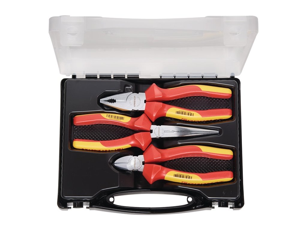 Sada klieští Obsah 3-dielneho VDE pochrómovaného plastového kufríka PROMAT