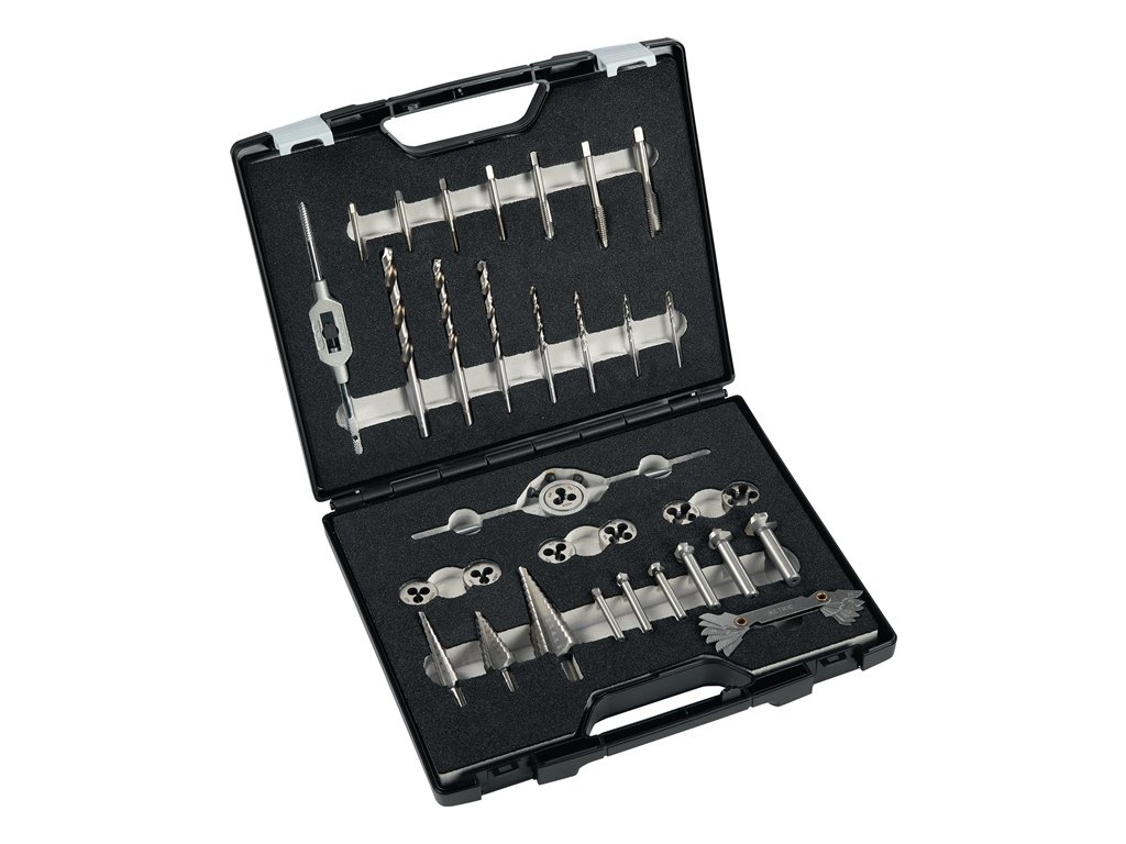 Súprava na obrábanie kovov M3-M12 33-dielna HSS plastový kufrík PROMAT