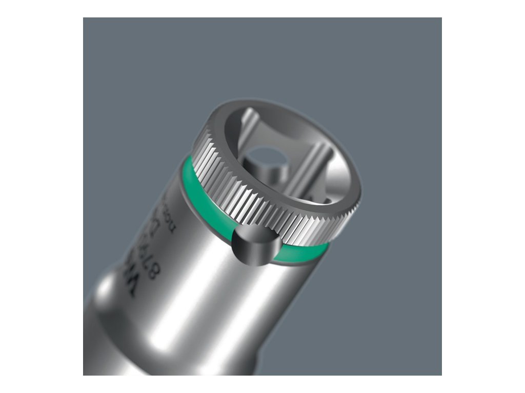 Magnetická nástrčná lišta s 9 dlhými vložkami na ručné a strojové kľúče (bez nárazu) - 3/8". Hladko sa otáčajúci mechanizmus zaisťuje bezpečné uchytenie a ľahké vybratie nástrčných hlavíc. Dlhé 3/8″ ručné a strojové nástrčné kľúče (ISO 2725 časť 3) od spoločnosti Wera na použitie v ručnej a strojovej prevádzke (bez nárazu), dokonca aj pri hlboko uložených skrutkových spojoch a vyčnievajúcich závitových tyčiach. S vyhľadávačom nástrojov Take it easy s farebným označením podľa veľkosti - na rýchle a jednoduché nájdenie požadovaného nástroja. Ľahko uchopiteľný aj pre mastné ruky. So šesťhranným profilom a drážkou na zachytenie guľôčky. Šesťhranný profil umožňuje prenos veľkých síl a menej zaťažuje hrany matice alebo hlavy skrutky ako dvanásťhranný profil. Vďaka malému uhlu natočenia ráčny s jemným ozubením je použitie šesťhranného profilu zbytočné aj v stiesnených priestoroch. Pre skrutky a matice so šesťhrannou hlavou. Magnetická lišta sa dá dočasne pripevniť na kovové povrchy a má bezpečnú funkciu zaistenia a odistenia matice vďaka funkcii otočenia k odisteniu.Dodatočné parametre