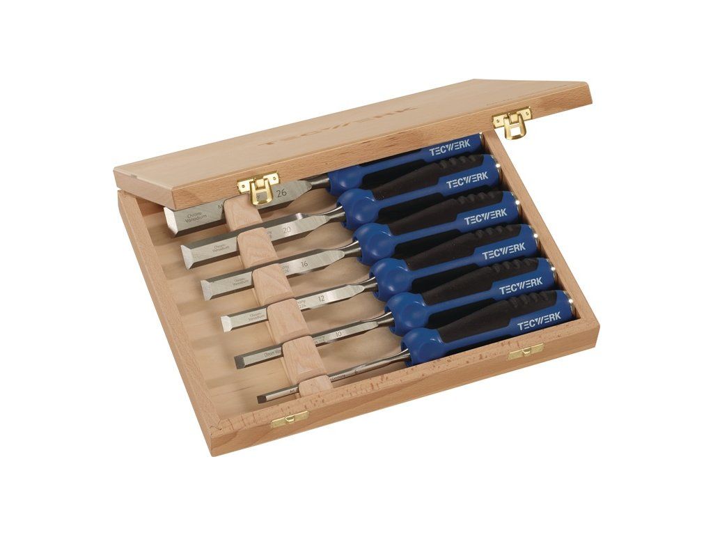 Sada dlát 6,10,12,16,20,26 mm 2-komponentná rukoväť 6-dielna drevená škatuľa TECWERK