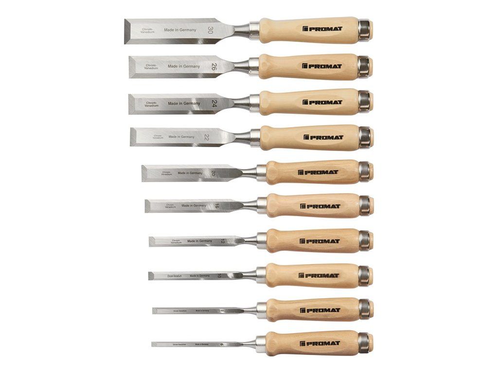 Druh produktu: Sada sekáčov, Hlavné vlastnosti: 6,8,10,12,16,20,22,24,26,30 mm, Materiál nástroja: Rukoväť z bieleho buku tvar Ulm