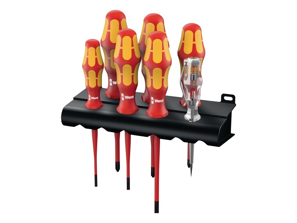 s viaczložkovými silovými tvarovanými rukoväťami s ochranou proti odvaľovaniu - izolované VDE do 1000 V - vyrobené podľa IEC 60900, kusovo testované - čepele z legovanej nástrojovej ocele - s zmenšeným priemerom čepele a integrovanou ochrannou izoláciou (vhodné najmä pre hlboko uložené skrutky a pružinové prvky) - systém navádzania veľkosti - Take it easy Tool Finder System (977216)Dodatočné parametre