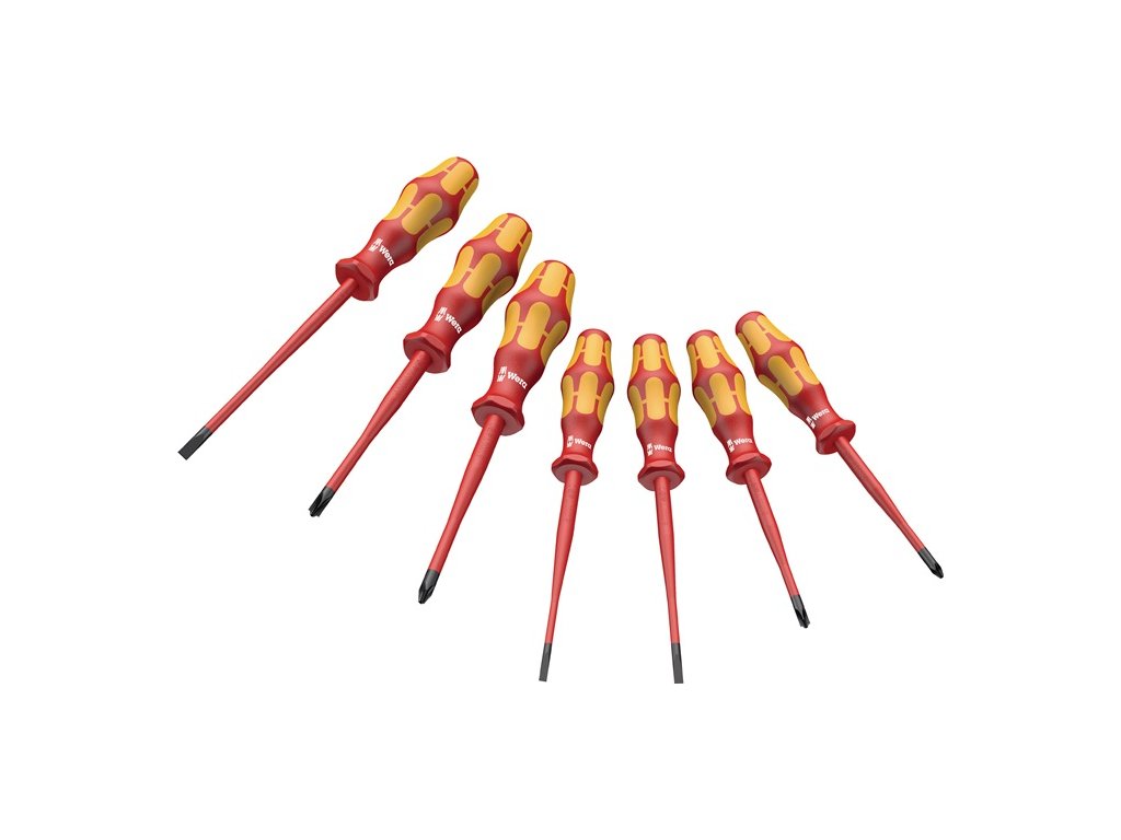 Sada skrutkovačov 160 iSS/7 7-dielna drážkovaná / PH / +-(SL / PZD) čepeľ a rukoväť extra tenká VDE WERA