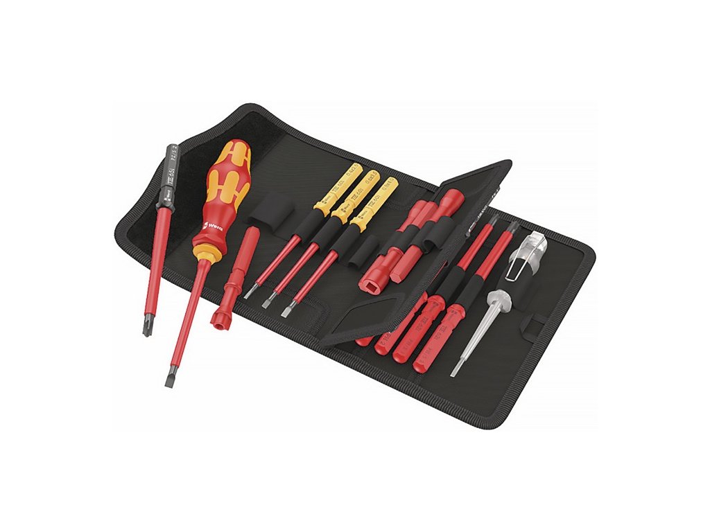 laserom vygravírované informácie o veľkosti na rýchle a jednoduché nájdenie požadovaného nástroja - 4 kľúče na spínanie skríň - 1 jednopólová fázová skúšačka - zástrčkový test pri 10 000 V na bezpečnú prácu pri schválenom napätí 1000 V - textilné vrecko má na zadnej strane zónu z rúna - vrecko možno pripevniť ku komponentom Wera 2go pomocou samolepiacej páskyDodatočné parametre