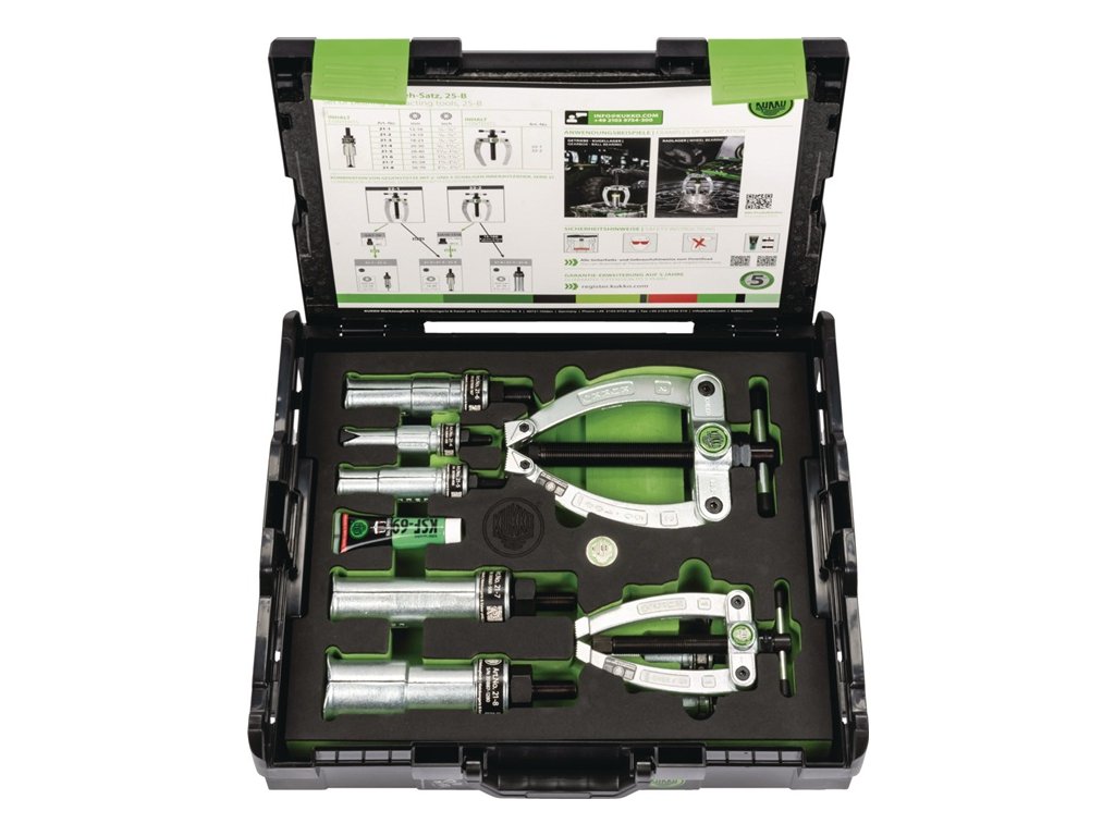 Kompletné súpravy - s vnútornými vyťahovačmi a protistojkamiPoužitie:na vyťahovanie tesne priliehajúcich guľôčkových ložísk, vonkajších krúžkov guľôčkových ložísk a puzdier