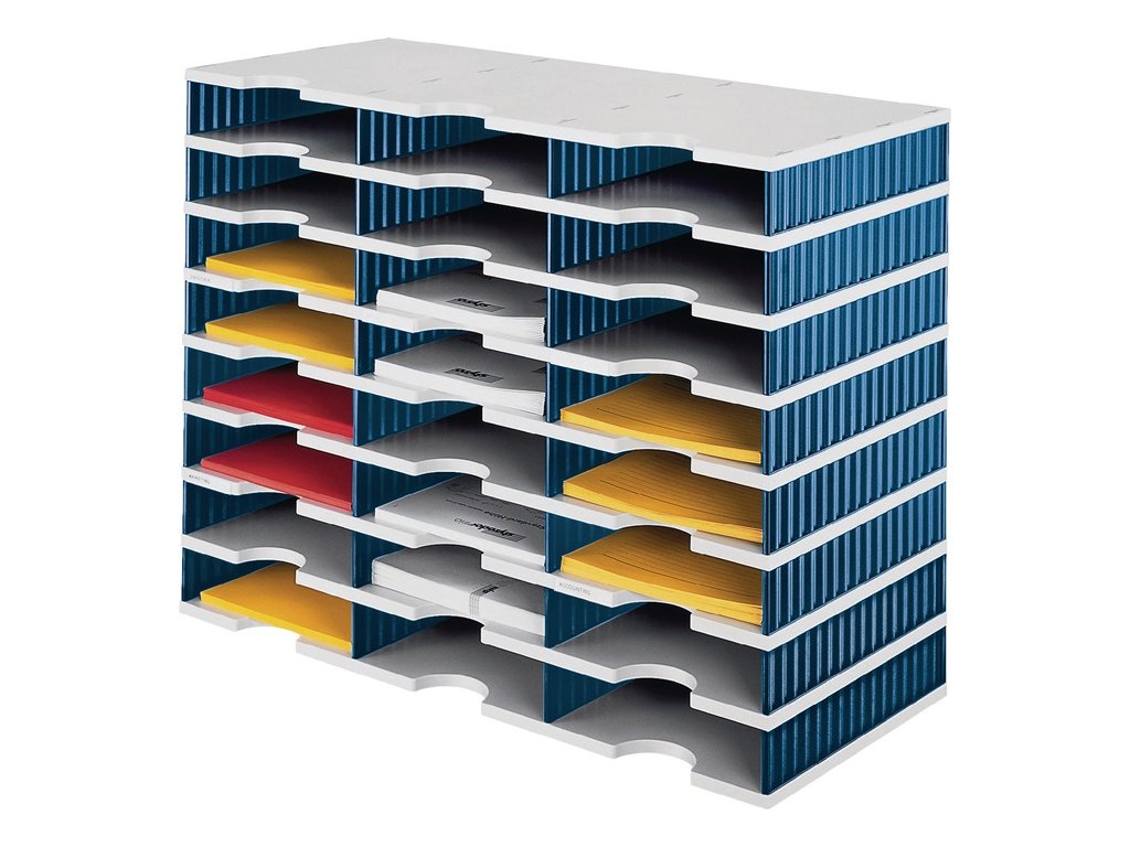 robustná polystyrénová konštrukcia, so sivými základňami a modrými bočnicami - vrátane štítkov na označovanie - jednoduchá zásuvná montáž bez použitia náradia - dodáva sa v demontovanom staveDodatočné parametre