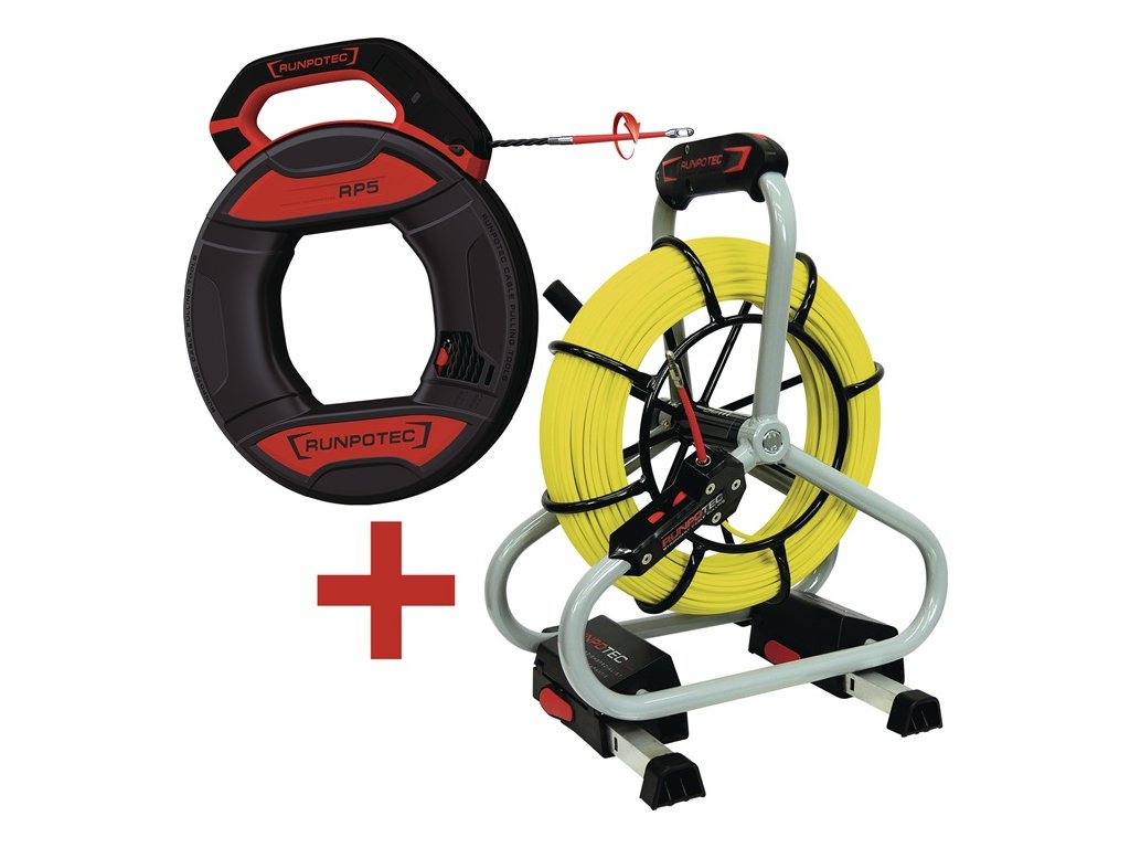 1 x profesionálna súprava sklolaminátová tyč Ø 4,5 mm dĺžka: 60 m, s koncovou objímkou na začiatku a konci tyče, oceľová cievka Ø 330 mm vč. Dvojitý vývodový systém, výsuvné nožičky s úložným priestorom, príslušenstvo v cene: 1x RG7 RUNPO LEADER s predným závitom, 2 x koncové objímky, 1 x spojovacia objímka, 1 x pútko, 1 x špeciálne lepidlo, 1 x valček, 1 x RUNPO 5 v plastovej škatuľke, dĺžka: 30 m, vrátane 2 x RG7 RUNPO LEADER s kompenzáciou krútenia (zalisované na oboch stranách).