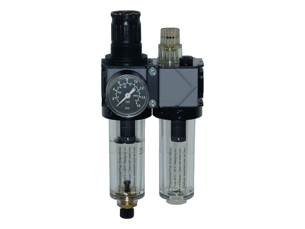 Dvojdielny - pozostáva z: filtračného reduktora tlaku (ručné vypúšťanie) a maznice hmly - s polykarbonátovou nádobou - vnútorný závitDodatočné parametre