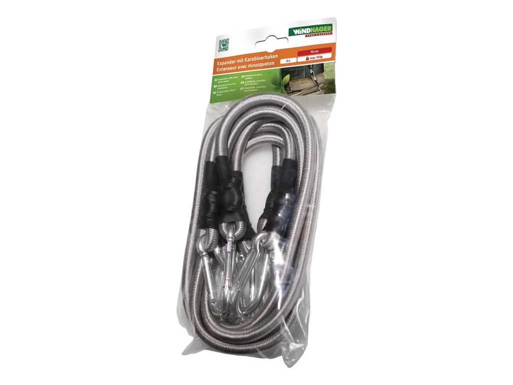 Užitočné príslušenstvo na rýchle napínanie plachiet, markíz atď. - Karabíny na oboch koncoch - sada so 4 rozperkami po 70 cm a 8 karabínamiDodatočné parametre