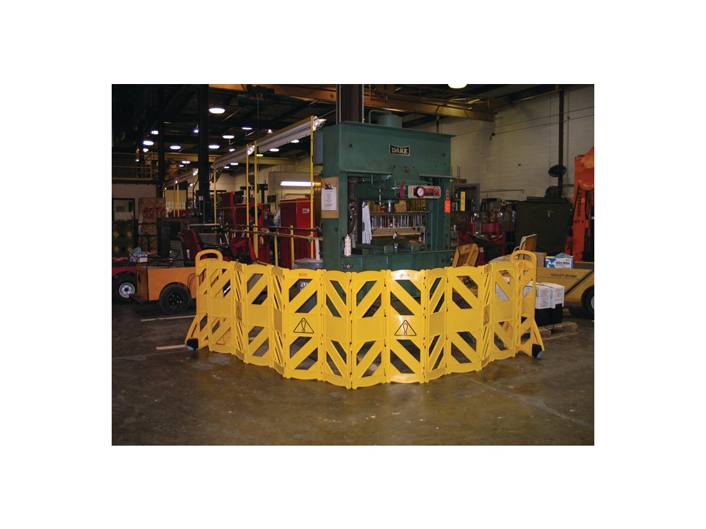 na vnútorné aj vonkajšie použitie - dobre viditeľná a ľahko použiteľná vďaka 16 pohyblivým prvkom v požadovanej nebezpečnej zóne - ako rovná zábrana, zakrivená alebo v kruhu - 2 neoznačujúce kolieska umožňujú rýchle použitie na mieste v zatvorenom stave - žltá farba, vyrobená z polyetylénu - dĺžka 4 m v úplne rozloženom stave - V 1000 x Š 600 x H 350 mmDodatočné parametre