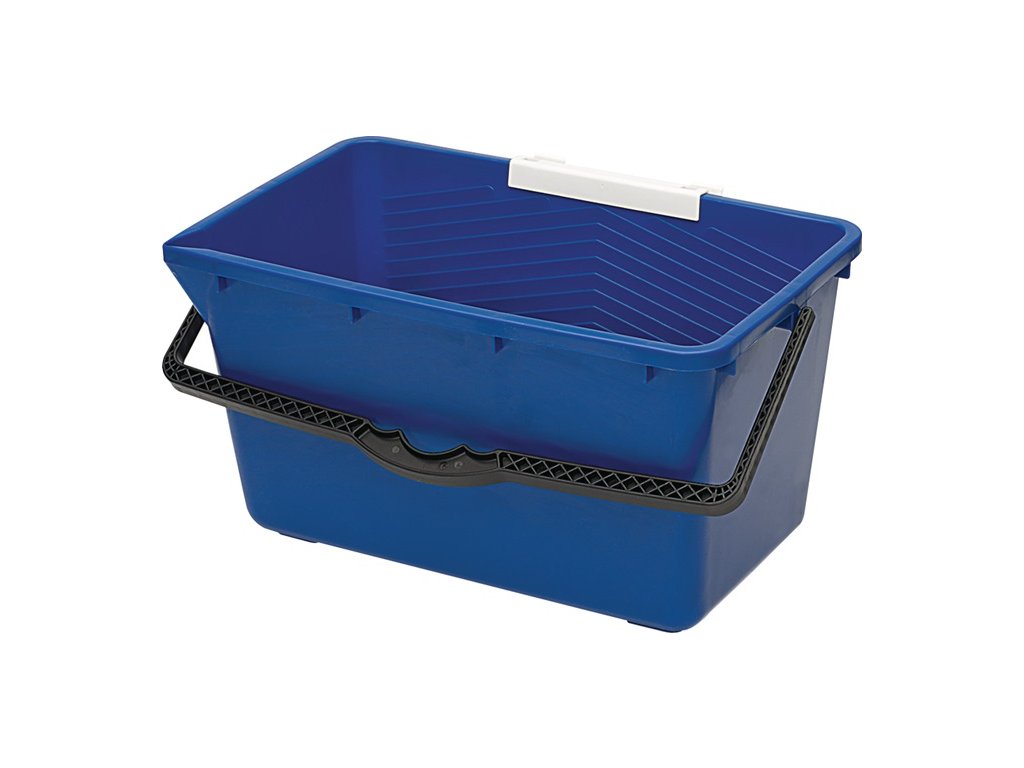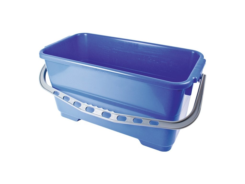 na umývanie okien - extra robustná plastová nádoba, modrá, s meracou stupnicou - plastové držadlo na prenášanie - s držiakmi na stierku alebo stierače okienDodatočné parametre