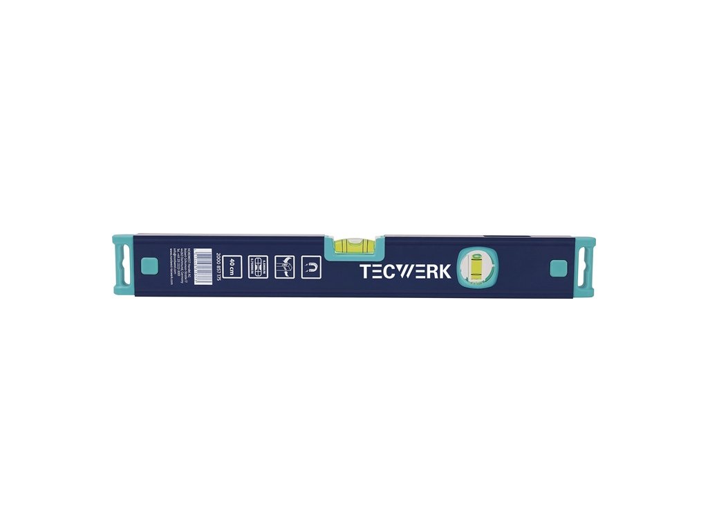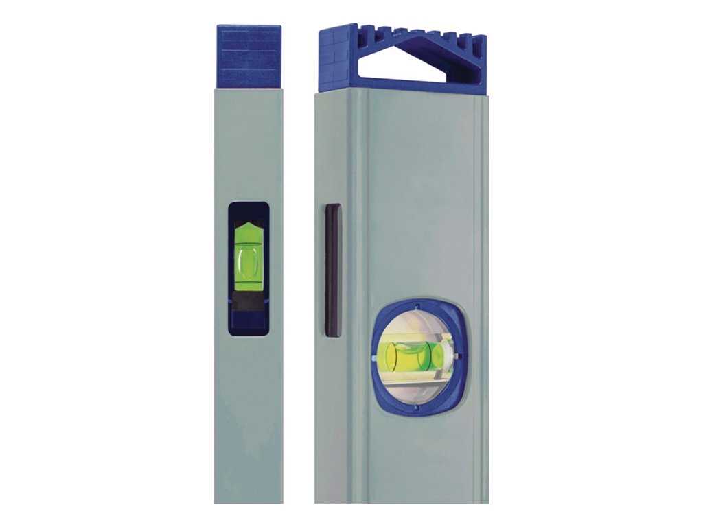 vyrobená z hliníka - silnými magnetmi - modrý práškový povrch - zväčšená vodorovná vodováha na rýchlejšie rozpoznanie výsledku merania - frézovaný merací povrch - patentovaná zrkadlová vodováha - pohľad zhora na zvislú vodováhu - presnosť merania v normálnej polohe ± 0,5 mm/m, v obrátenej polohe ± 0,75 mm/mDodatočné parametre