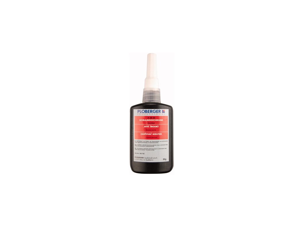 na zaisťovanie skrutiek, vysoko viskózne, ťažko demontovateľné, pre závitové spojenie do M 36, viskozita pri 25°C 1.500 - 6.500 mPas, moment lomu 20 - 25 Nm, max. krútiaci moment 40 - 55 Nm, ručná pevnosť pri izbovej teplote oceľ/oceľ 10 - 15 min, červená farba, odolné voči teplotám od -55°C do +150°C, konečná pevnosť po cca. 12 hodinách / POPIS (D70106)Dodatočné parametre