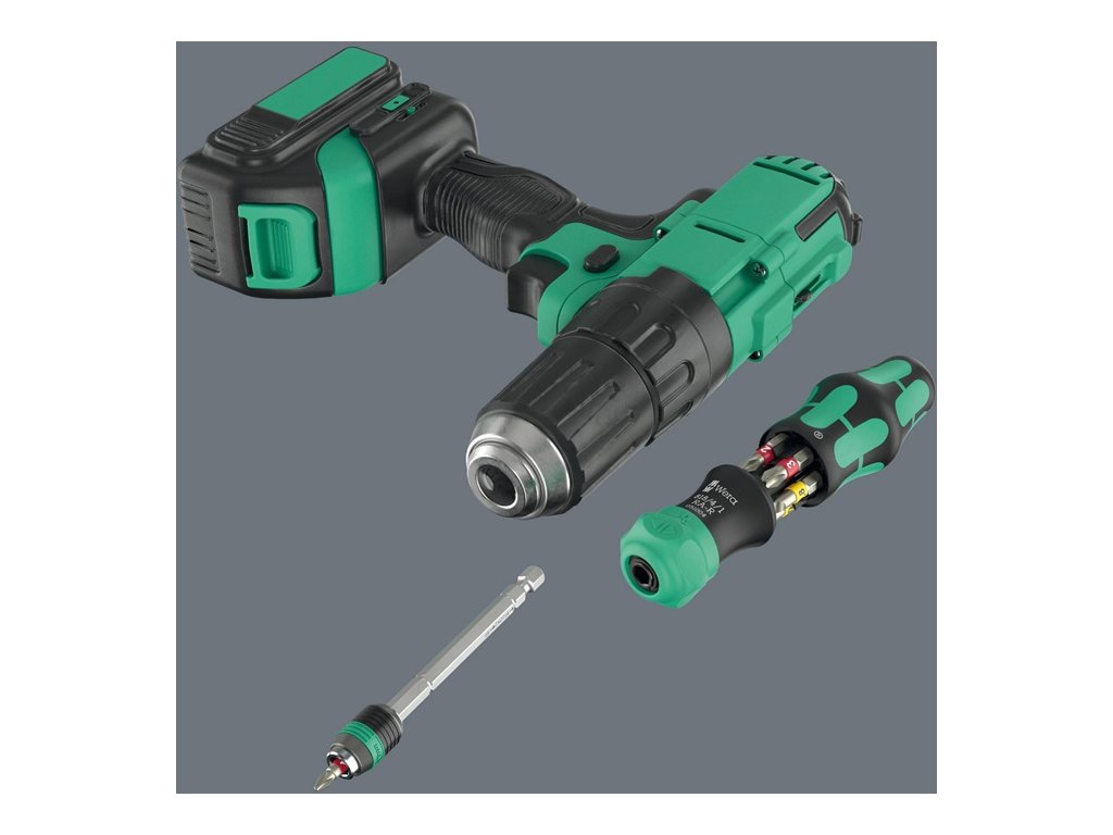 vhodné pre bity s vonkajším šesťhranným pohonom 1/4″ podľa DIN ISO 1173-C 6.3 a E 6.3 a pripojovacie série Wera 1 a 4 - račňa integrovaná v rukoväti s jemným ozubením, intuitívne prepínanie - račňový mechanizmus možno deaktivovať polohou 0 pre presnú prácu - 1/4″ šesťhranná zásuvka, magnetická - spojovacia časť - teleskopická čepeľ - technológia Rapidaptor s funkciou rýchleho zasunutia, rýchleho vysunutia, rýchleho otáčania, skľučovadla a funkcie jednej ruky - 6 bitov BiTorsion pre dlhú životnosť, odolné, na univerzálne použitie - vyhľadávač nástrojov Take it easy: S výstupným farebným označením a veľkostnou pečiatkou na jednoduché nájdenie požadovaného bitu - Rukoväť Kraftform s ochranou proti odvaľovaniu, viaczložková, integrovaný zásobníkDodatočné parametre