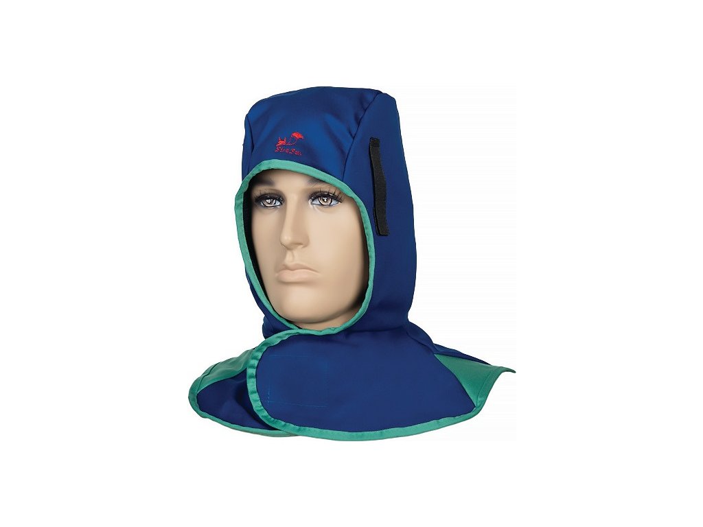 Nehorľavá tkanina so zapínaním na suchý zips - k prilbe sa pripevňuje aj pomocou suchého zipsuEN ISO 11611:2015 Cl. 1/A1+A2